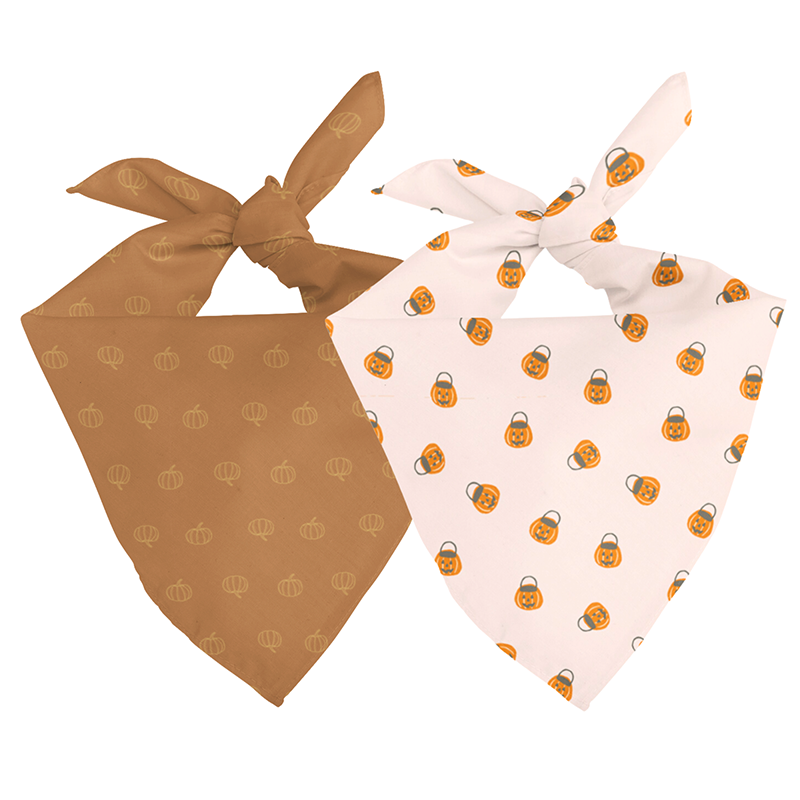 The Oh Pumpkin Dog Bandana is perfect for this Fall season! It's fun colorful print looks great on any dog breed. This double sided bandana is available as a tie on style in sizes small, medium, & large. For questions about sizing please reference our sizing chart.
